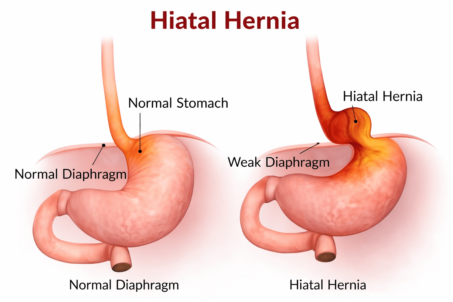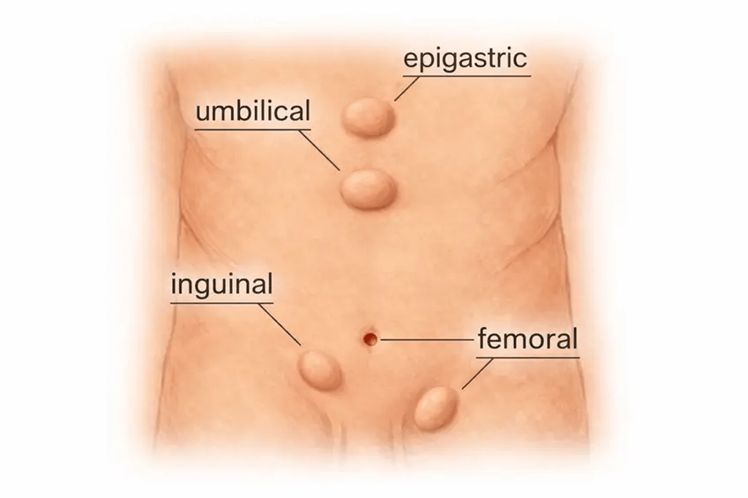 A hernia occurs when internal tissue or an organ bulges through a weak area in the abdominal muscles.